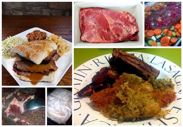 Quienes siguen como yo los programas de Anthony Bourdain (No Reservations) y Adam Richman (Man vs Food) sabran de su predilección por los sandwiches de un corte de carne de vaca: el brisket. Este corte se obtiene de la parte del pecho que se encuentra justo debajo del hombro y llega hasta el área del esternón, en Argentina lo mas similar es la Tapa de Asado. Pero al menos en mi familia somos de cocinar la tapa de asado muy poco tiempo, a fuego fuerte, para que quede jugosa y dorada por fuera, un proceso muy distinto al que le hacen en el país del norte.