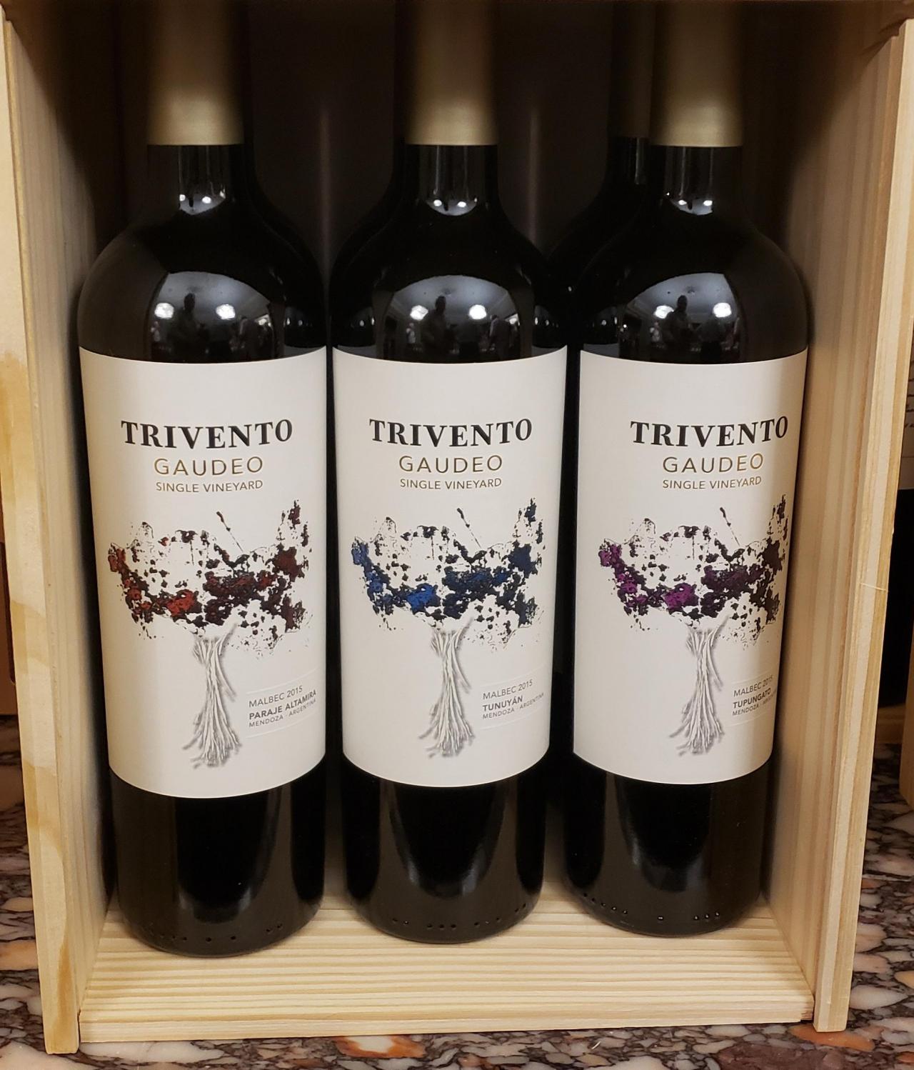 Los Trivento Gaudeo son tres Malbec provenientes de micro terruños de diferentes zonas del Valle de Uco (Gualtallary, Paraje Altamira y San Pablo).