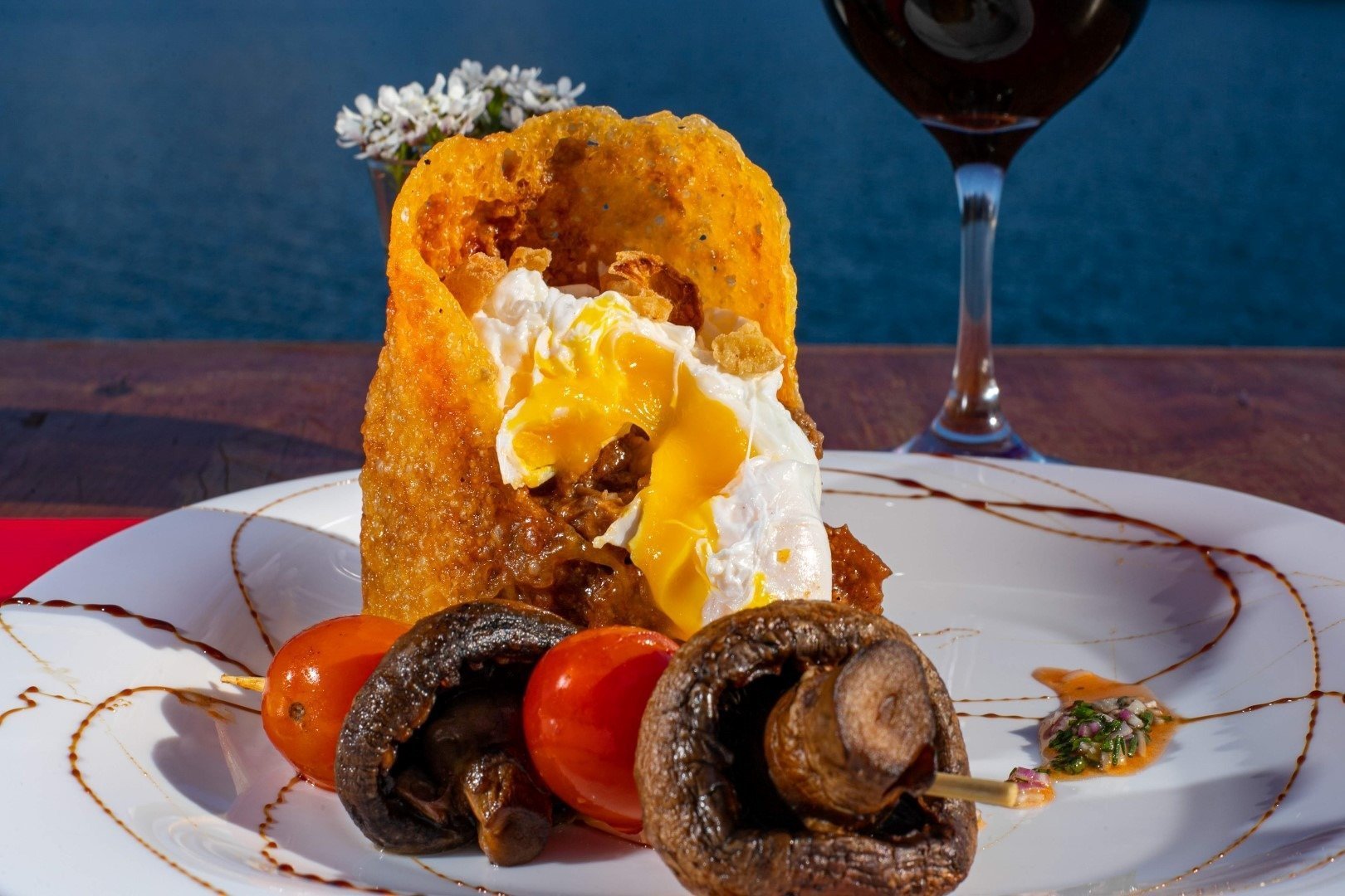 • El hotel Villa Huinid obtuvo el premio al Mejor Plato en la categoría Entrada, con 666 votos. Su propuesta: langostinos del Golfo de San Matías al ajillo negro, papas cocidas en algas marinas patagónicas, aliño al aceite de oliva de las grutas, caldo de cordero y pan de algarroba.