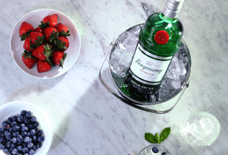 • En un copón o vaso alto, agregar 45ml de Tanqueray London Dry Gin, 20ml de jugo de limón, 20ml de almíbar y mezclar. Agregar hielo en cubos y rellenar el vaso con soda.