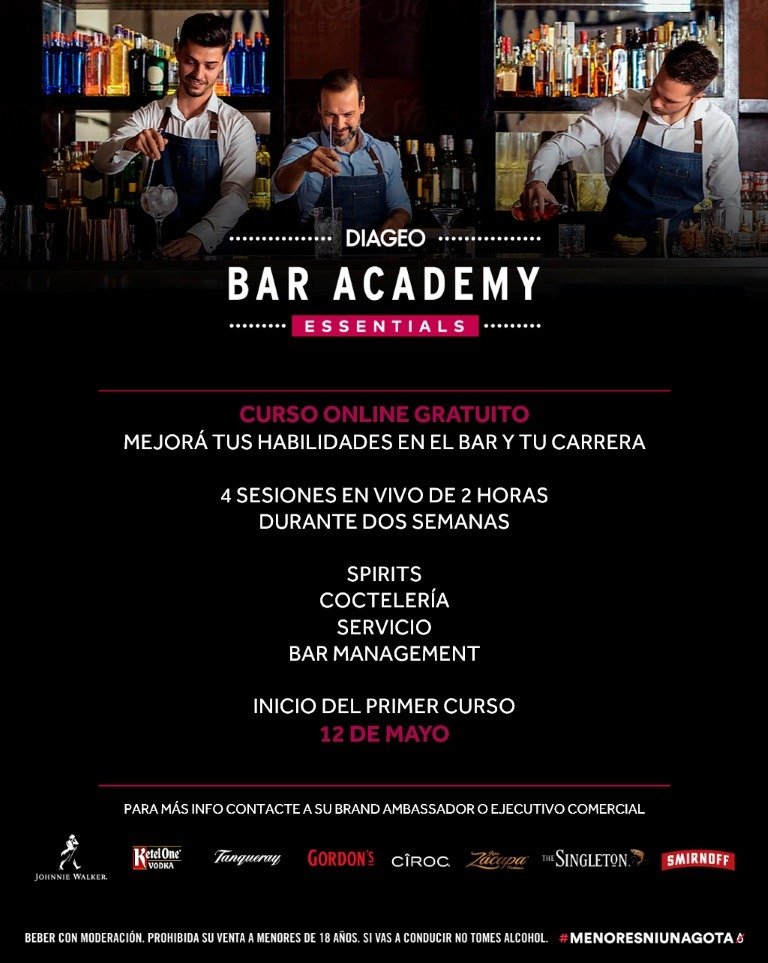 La capacitación estará a cargo de expertos en coctelería, capacitadores y Brand Ambassadors de Diageo de la región Cono Sur, se dará en español a través de la plataforma de comunicación Zoom y comprende cuatro sesiones de dos horas cada una los martes y jueves a las 16:00hs, comenzando el próximo 12 de Mayo.
