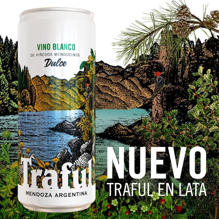 Traful en lata es un vino dulce, joven y fresco, con menos alcohol y de aromas presentes. Elaborado a partir Torrontés Riojano, Moscatel Alejandría y Semillón.