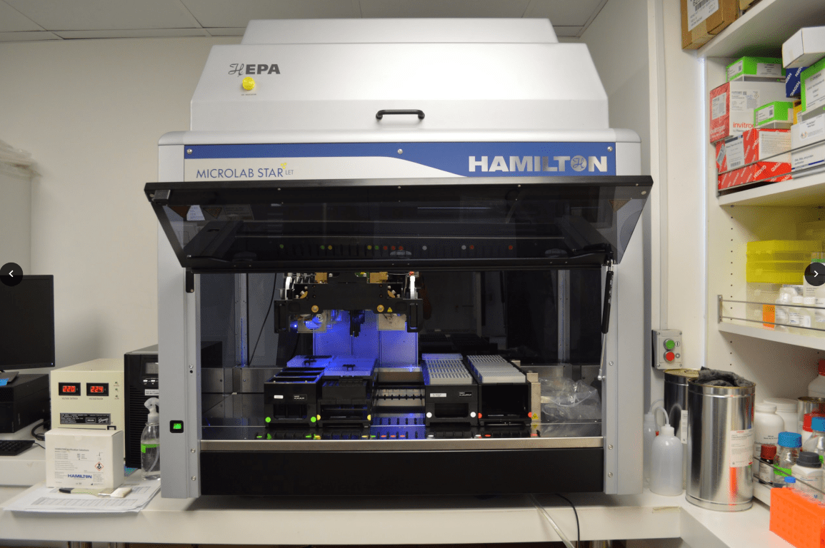 Las capacidades del laboratorio de biología molecular del CII destacan por la robotización y automatización de sus procesos, contando, entre otros, con un equipo robot pipeteador Hamilton Microlab STARLet que procesa 2.300 muestras diarias y un qPCR Thermofisher QuantStudio 5 con capacidad de diagnóstico de 768 muestras por día.