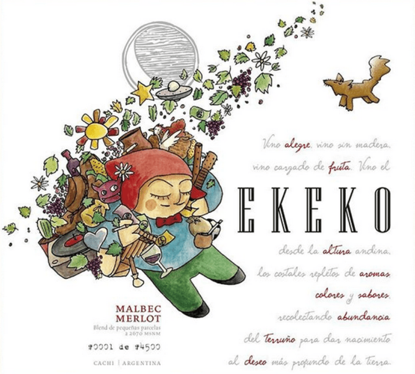 Ekeko 2017 es un blend de Malbec y Merlot co-fermentados, las dos cepas que se cultivan en la pequeña finca salteña de Miraluna, a 2600 metros de altura. Es la demostración de la deslumbrante calidad de la fruta que obtienen de su pequeño viñedo.