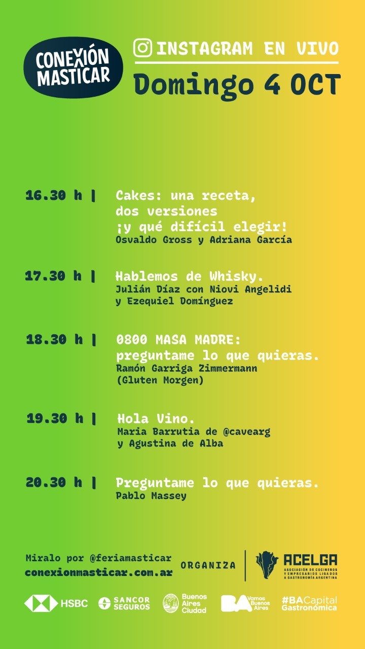 Abriremos nuestras casas, cocinas y lugares de trabajo para aprender, divertirnos y seguir promoviendo la gastronomía argentina. Recetas, charlas, secretos, datos útiles para comprar mejor, clases y contenidos especiales, como Conexiones Masticar por YouTube.