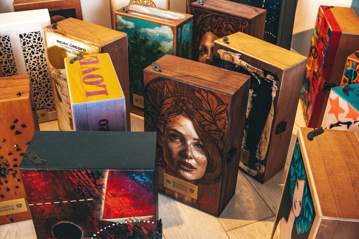 Así fue que se decidió encarar esta última etapa a modo de cierre solidario en el cual, 14 artistas intervinieron estuches de cedro, transformándolos en obras únicas e irrepetibles.
