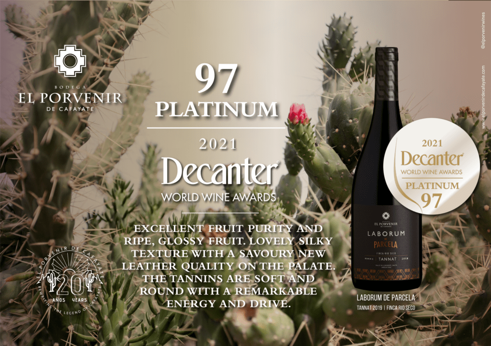 La bodega El Porvenir de Cafayate, ganó un premio Platino en el prestigioso concurso internacional Decanter con su Laborum de Parcela, Finca Río Seco Tannat 2019