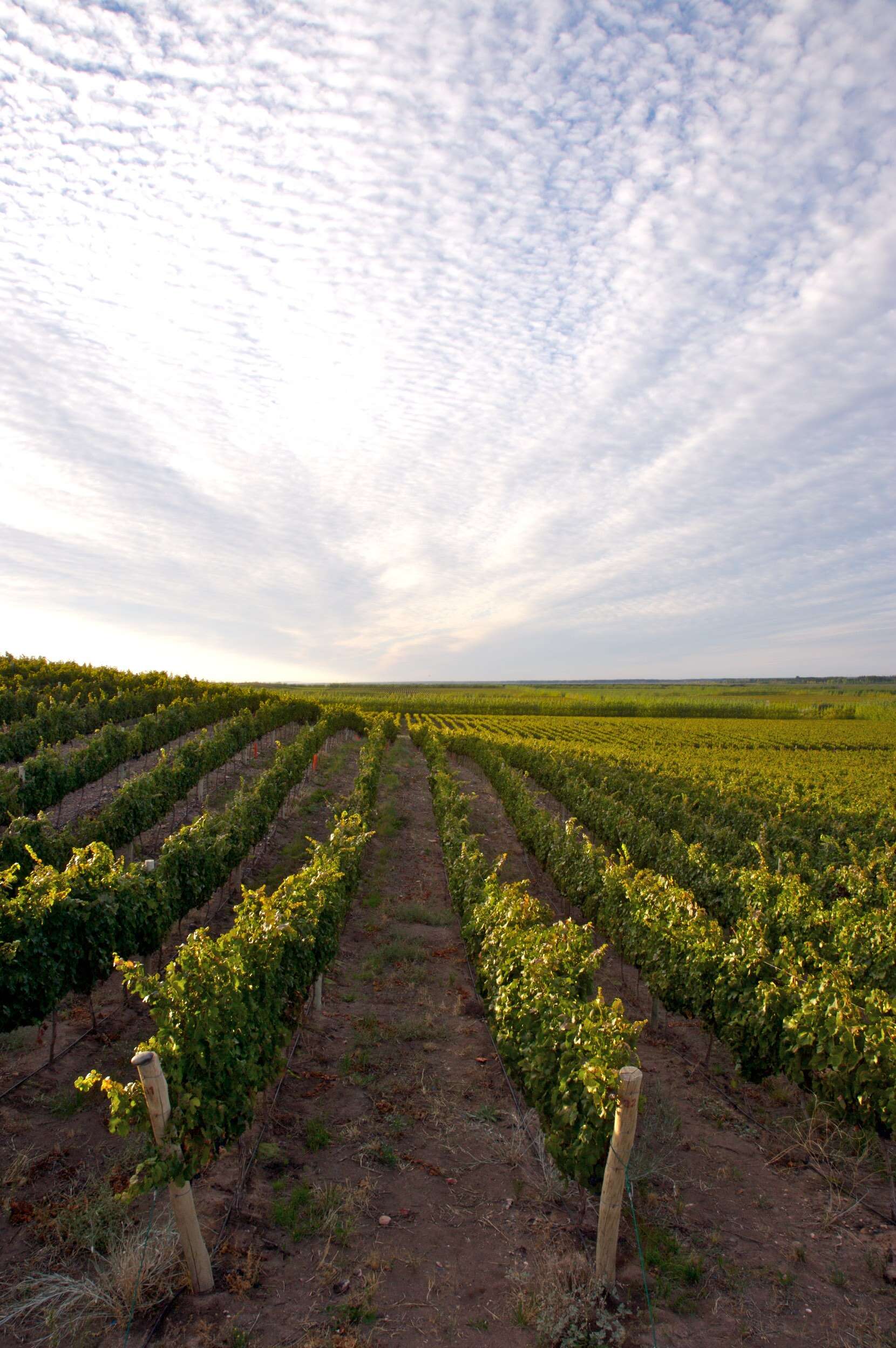 Posee 850 hectáreas de viñedos propios con variedades patagónicas como Malbec, Pinot Noir, Merlot, Cabernet Sauvignon, Cabernet Franc, Syrah y Chardonnay en San Patricio del Chañar, flamante terruño del Nuevo Mundo con solo 20 años en el corazón de la Patagonia, provincia de Neuquén. Sus fincas abarcan la mayor extensión de plantaciones que existe en la región.